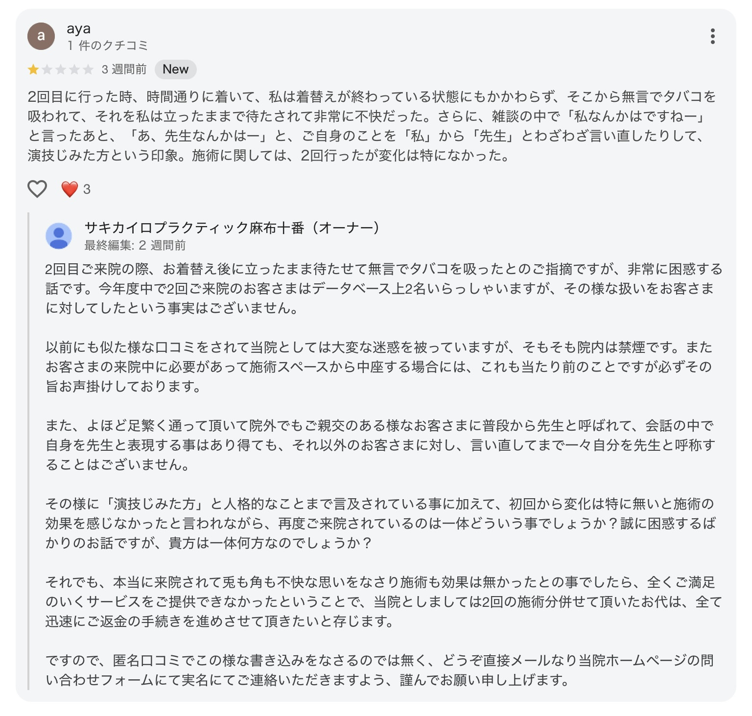 中には、来院頂いたお客さまとは到底考えられない様な